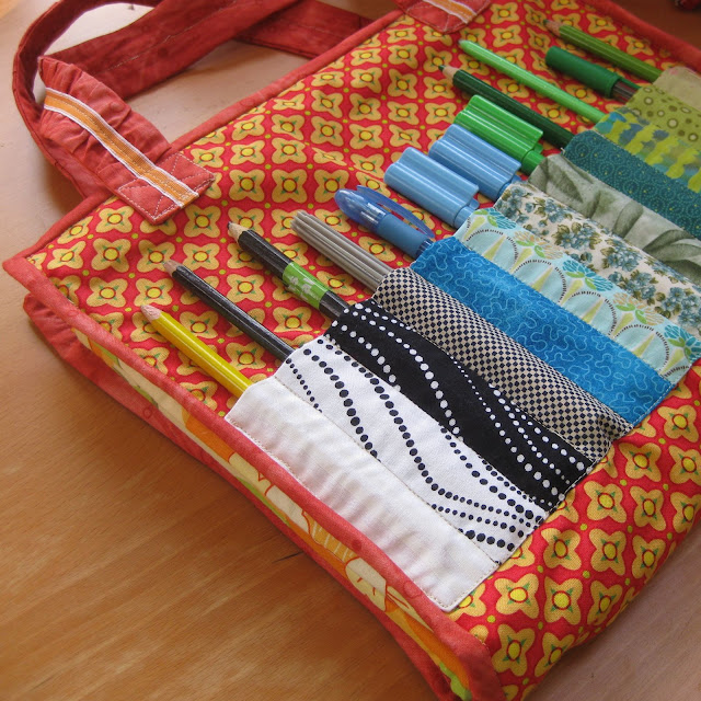 I found this adorable art tool holder on the Teresa Down Under blog and I definitely have to make one of these ASAP for my Dad. He has been asking me for a while for a nice solution for his paint brushes when he goes to paint outside and I think this would be perfect. I love that it has pockets for a sketch book too. I might have it so the tool pockets are on the inside and then maybe a long zipper that goes all along the outside and a longer strap so you could carry it like a messenger bag? Isn't it adorable?!